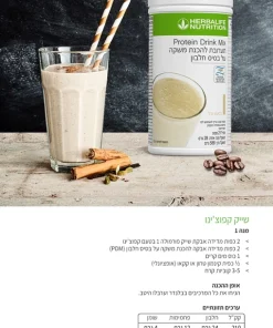 הוסיפו 2 כפות מדידה (26 גרם אבקה) PDM בטעם וניל ו-300 מ”ל מים וערבבו היטב באופן ידני או בבלנדר. הוסיפו 4-3 קוביות קרח ליצירת מרקם סמיך יותר. ניתן לשלב עם פירות, ירקות, אגוזים ותבלינים.
